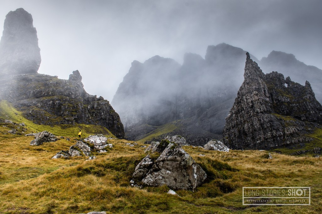 The Old Man of Storr is an iconic symbol of Skye and thankfully, Nadine and I ventured up very early to avoid the crowds. Unfortunately it was super cloudy/foggy and windy up there but it kind of added to the eerie atmosphere of the place.