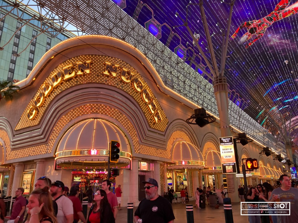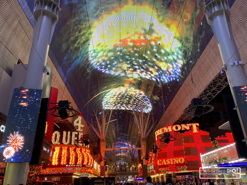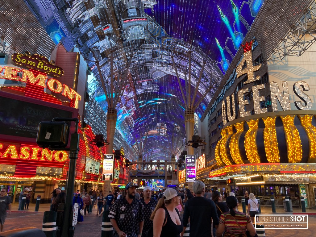The following day we walked around between air-conditioned Casinos and shopping malls again and planned to go to Fremont St. – The ‘Downtown’ part of Las Vegas with older, more seedy casinos. We found this much more fun, offering loads of free street entertainment, an electric atmosphere, impressive lights and lower bet limits. Not being a big gambler this allowed us to get involved a bit more and was fun.