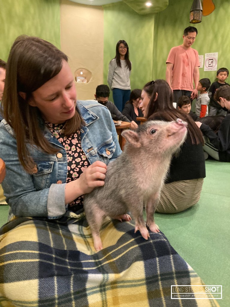 Tokyo is a classic case of ‘Old vs New’, a sprawling city with temples, shrines and ornamental gardens dotted throughout the city. Nadine and I walked on average 25,000 steps per day exploring and taking in the sights. Starting day 3 right with a visit to one of Harajuku’s many petting cafes, this one filled with micropigs.