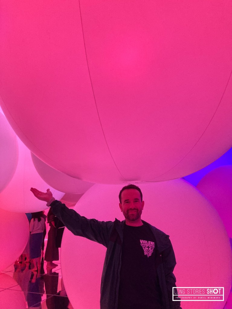 We travelled to the Koto area of Tokyo to visit the very popular ‘Team Labs – Planets’ immersive art installation. Removing shoes and socks and being warned to roll our trousers up beyond our knees before entering a dark room with deep cushioned floors and walls was somewhat unnerving especially as I was suffering with a niggling knee injury, however the whole walk through experience certainly lived up to the hype… LED light rooms, smokey watery projection rooms, vomit inducing projector mirror rooms and finally an immersive ‘garden’ room filled with thousands of living orchids suspended from the ceiling in motorised columns that move downwards to engulf you in the mirrored room.