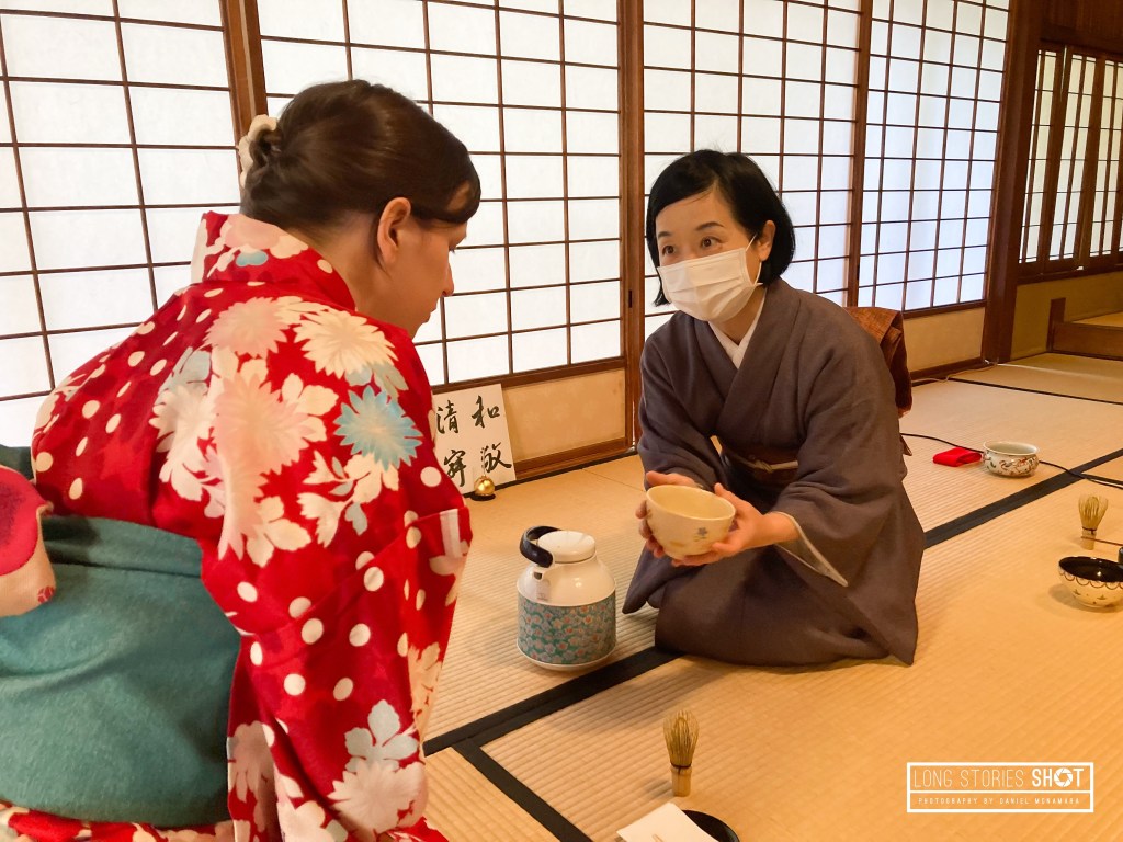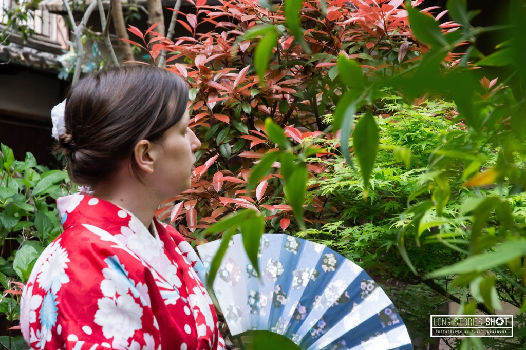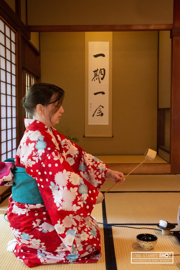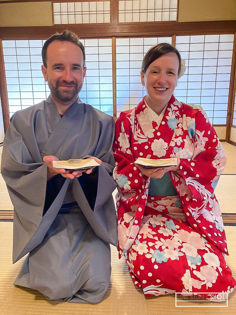 We woke early on the second day to participate in a traditional tea ceremony in the Gion district of Kyoto. I’m not usually a fan of signing up to tours when on holiday but this was such a wonderful experience, thanks not least to our host’s wonderful hospitality at the Maikoya Tea Rooms. Our host ‘Dodo’ (“Like the bird but I’m still alive!”) was so kind and welcoming. She taught us all about the traditional tea ceremony and its etiquette, helped Nadine and I to choose and get dressed into kimono and was also great at helping to capture our experience. She taught us how to make matcha and fed us traditional red bean sweet treats. We decided against keeping our kimono on for the remainder of the day which was a possibility.