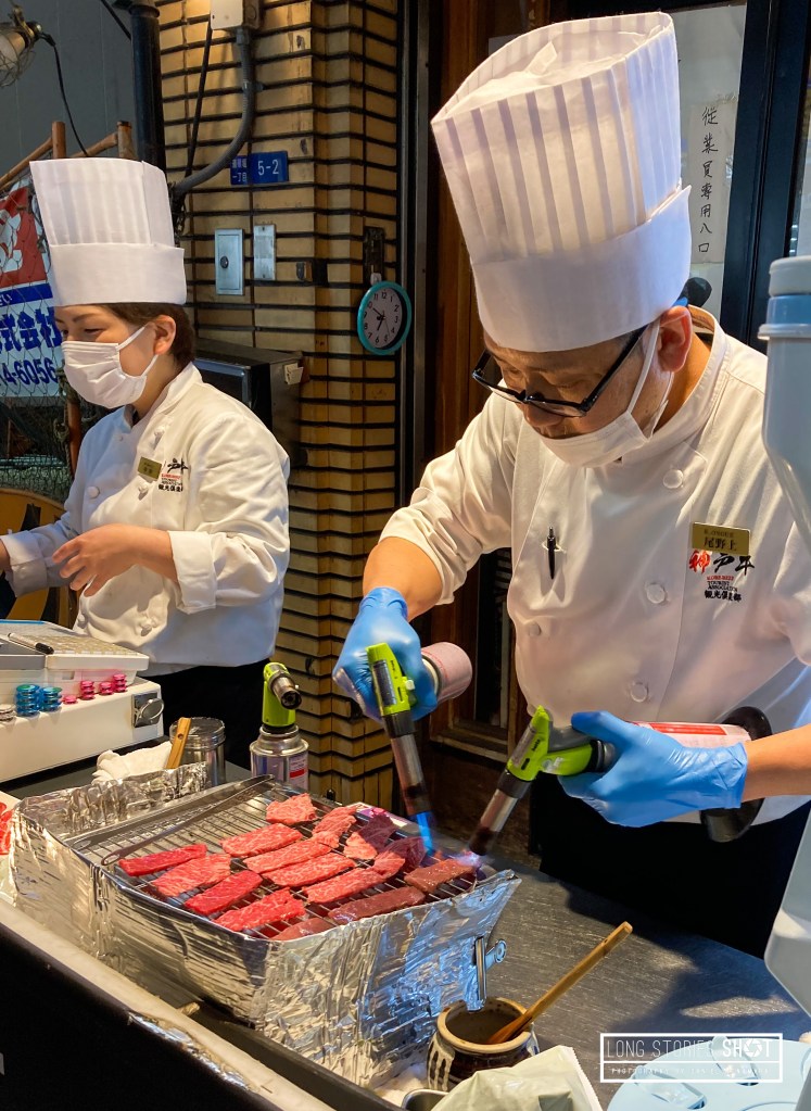 After our trip to USJ we has worked up a hunger so headed to the ‘rough and ready’ but oh-so charming Osaka Dotonbori area, famed for its street food. We ate, and we ate and it was all so good! Cheese filled sweet pancakes, Takoyaki, gyoza and melt in the mouth wagyu beef sushi.